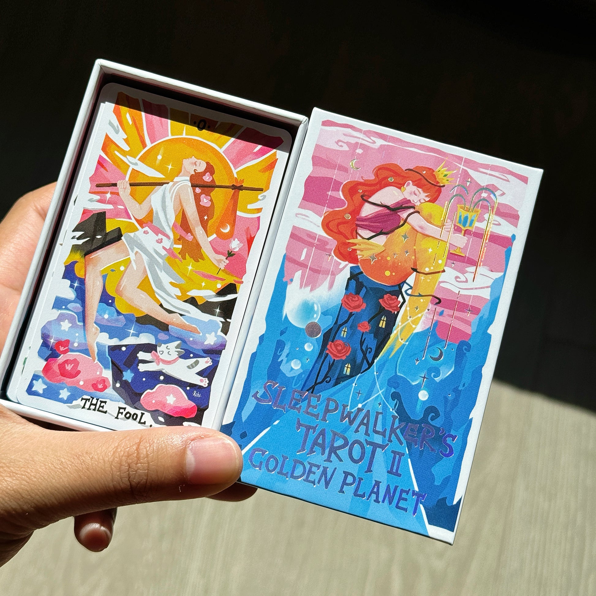 A colorful feminine deck about dreams and breakthroughs, mirroring the author's own experiences with recurring nightmares, lucid dreaming, and the profound healing that comes with self-acceptance. With their eyes closed, characters drift between dreams and introspection, inviting you to connect the conscious and subconscious. Available in two editions (Twilight & Sunrise), representing the two ends of a dream journey and the duality of dreams, which can be warm and empowering, or ominous and impenetrable.