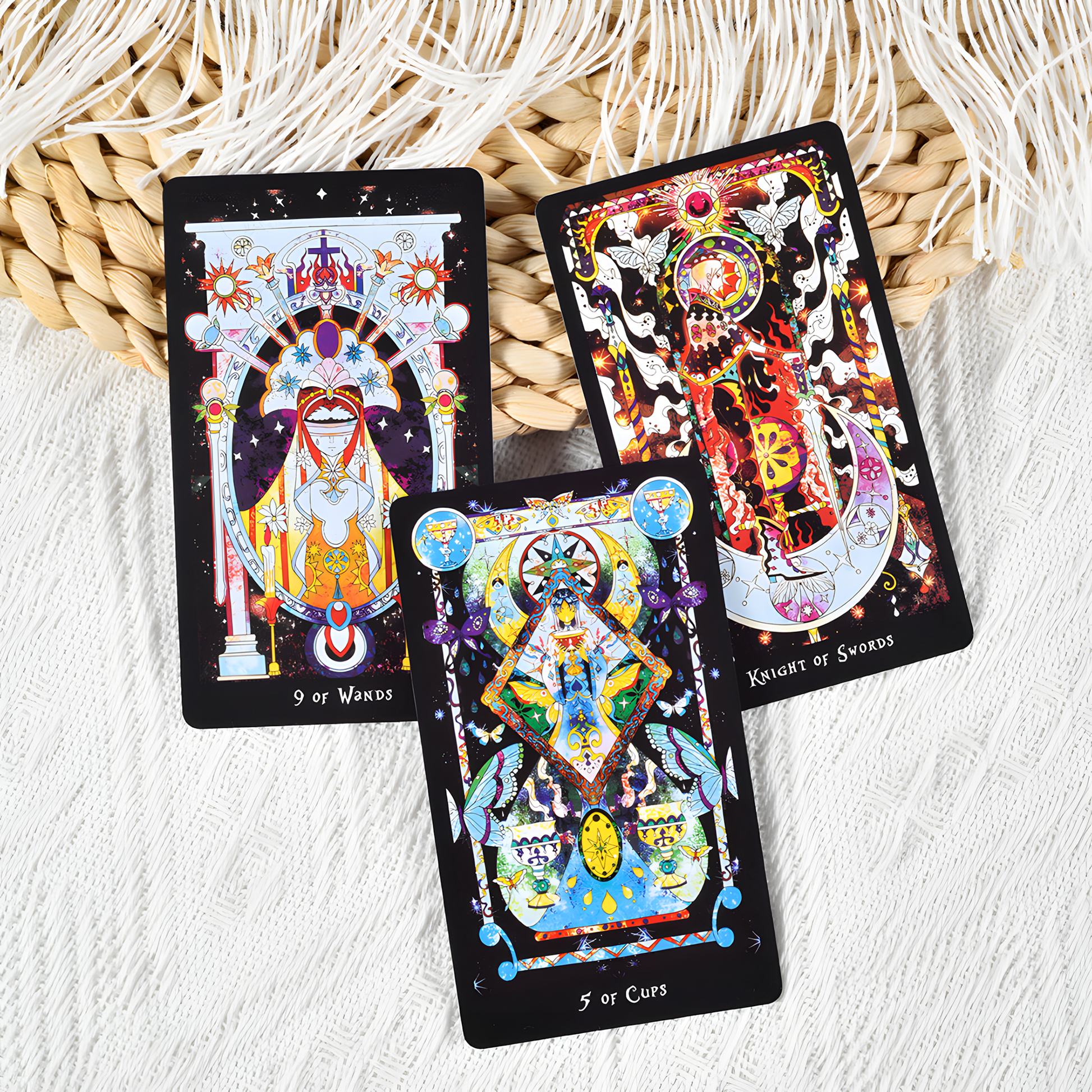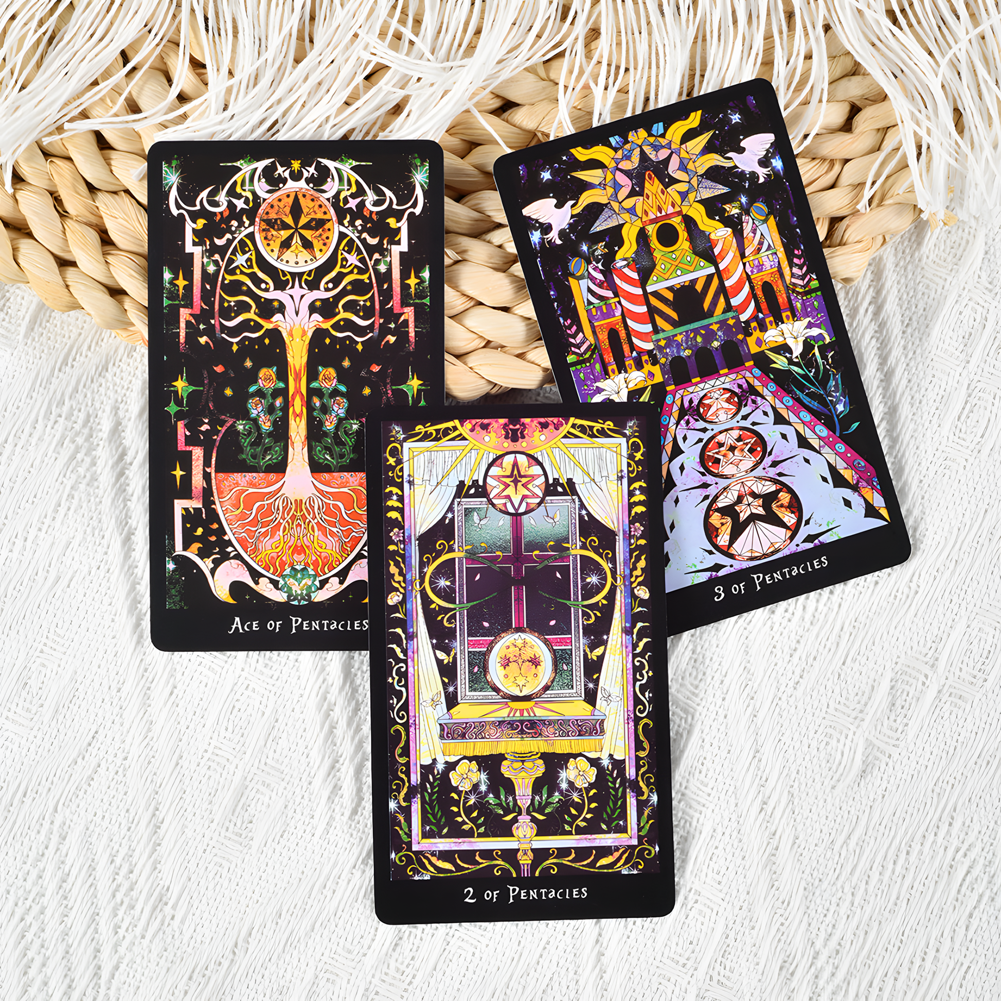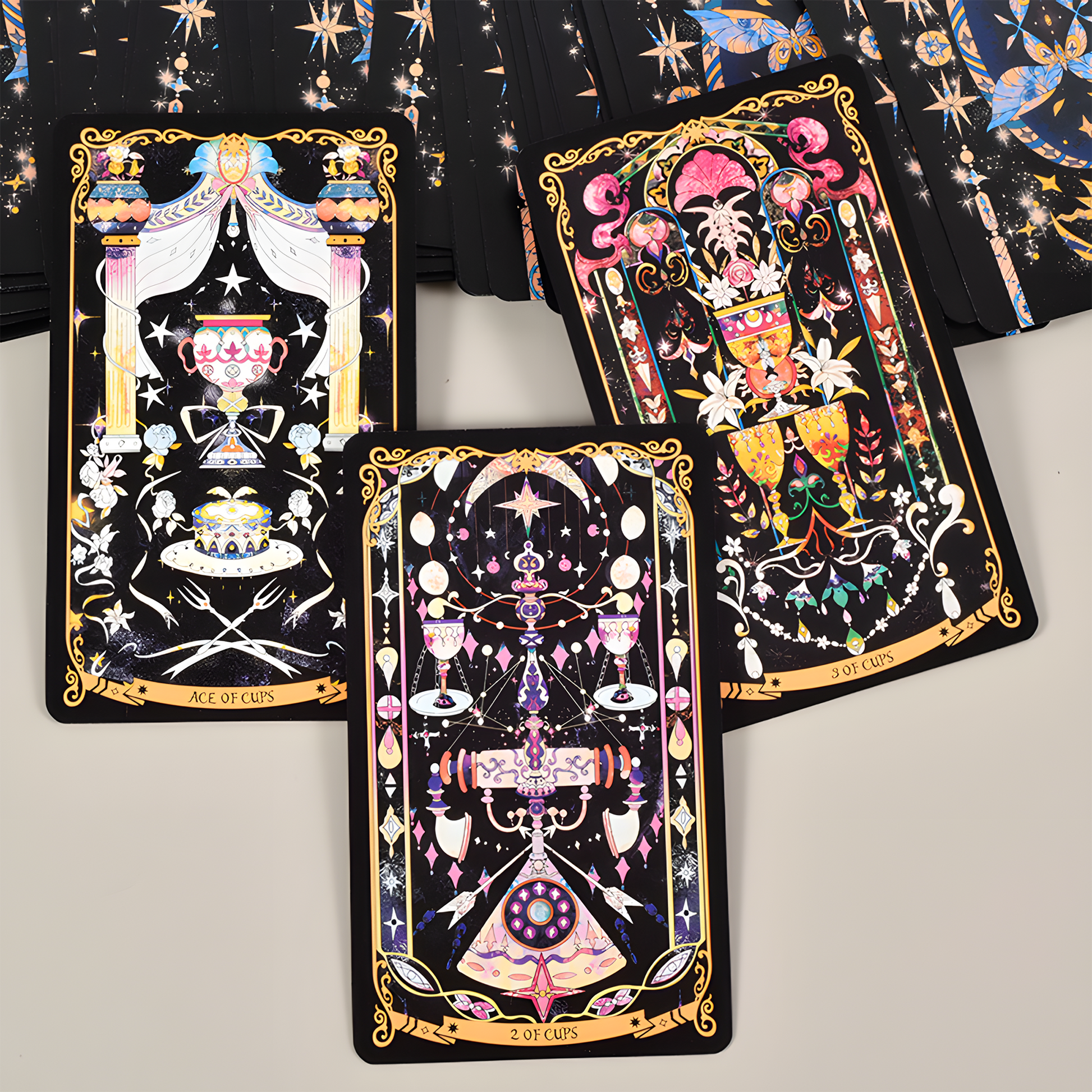 Somewhere beyond time, an ancient kingdom floats in the vast starry cosmos, hidden within a crystal sphere. Explorers drawn to the same strange frequency find themselves guided by a palace of starlight – a place that records their journey in symbolic whispers. Starry Enigma Tarot is born from that dreamlike realm, each card a door, each symbol a riddle, shimmering with cosmic mystery and wonder.